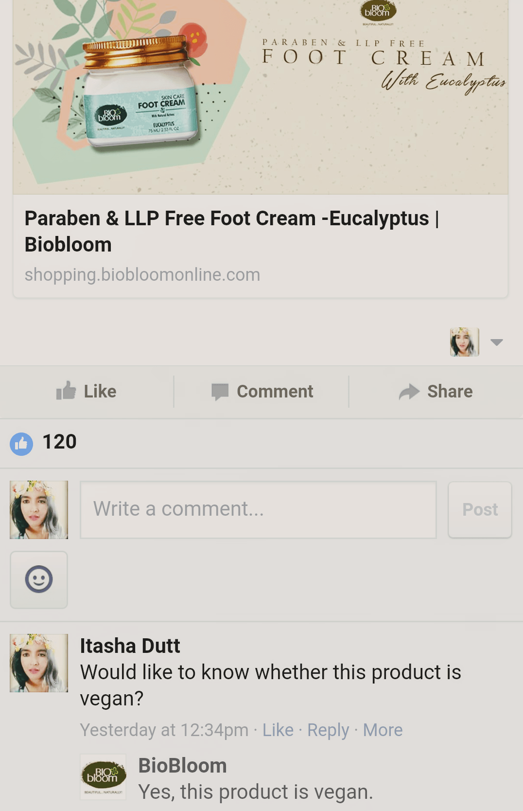 Hey! Everyone so today I will be reviewing a foot cream from the brand Bio Bloom in the fragrance eucalyptus . I recieved this cream in my June month’s fab bag . So let’s get started :
