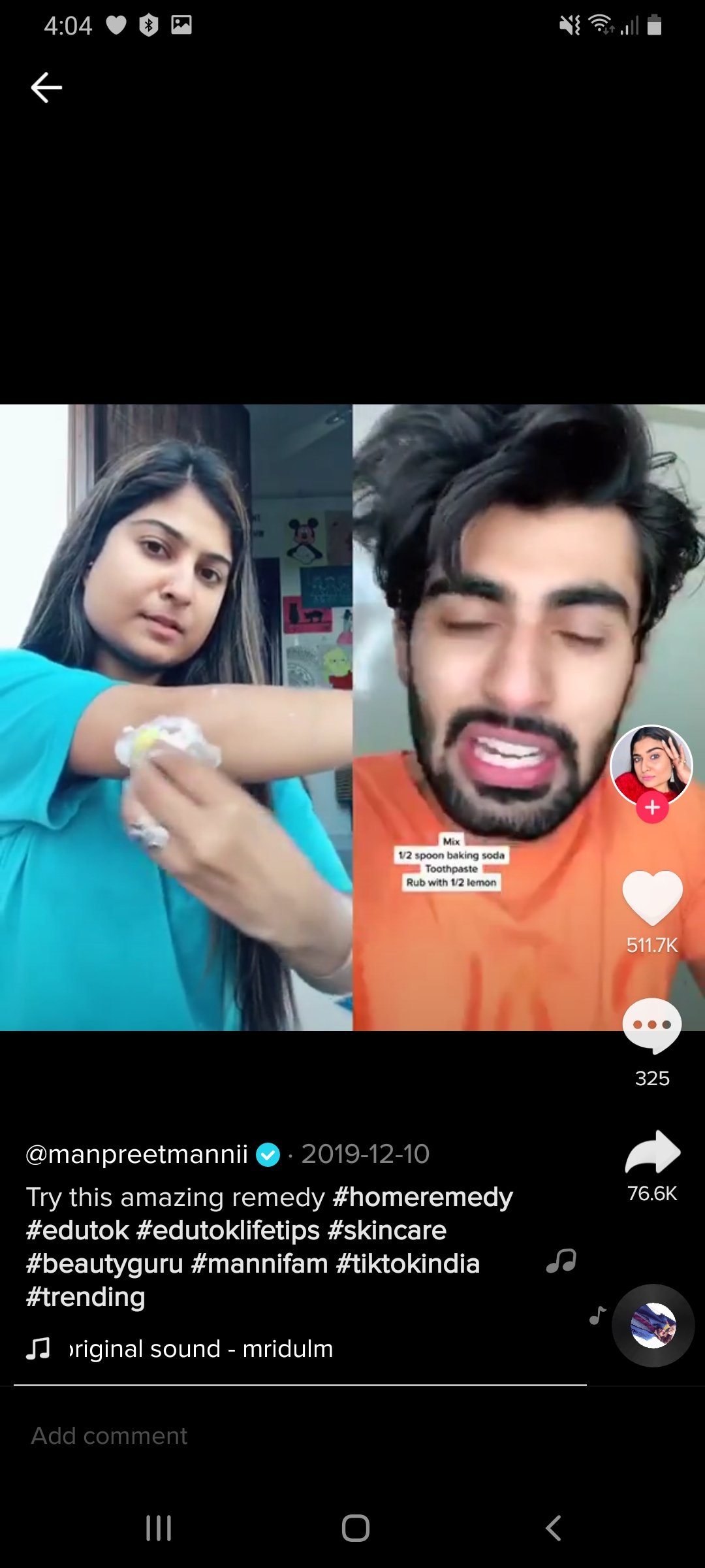 Somescreenshots I have taken from Indian tik tok showing how miracle these remedies are. Trust me none of them work for your skin. Stay away from these hacks.