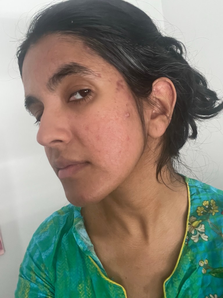 2) Texture: My cheek area looks smoother — still healing, but there’s less swelling and raised bumps.