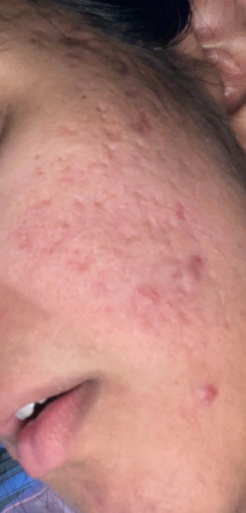 Lately my skin has been going through another cycle of changes, and I wanted to document it honestly — not just for myself, but for anyone who is on their own healing journey. These photos were taken today, and you can clearly see the active breakouts, redness, texture, and post-inflammatory marks sitting mostly on my cheeks and along the sides of my face.