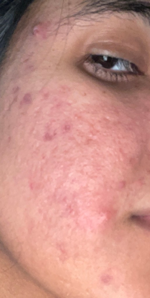 Even though it looks intense in photos, it doesn’t feel painful — just a little inflamed and irritated when I wash or touch my face. That is actually a good sign because irritation is easier to calm than deep cystic acne.